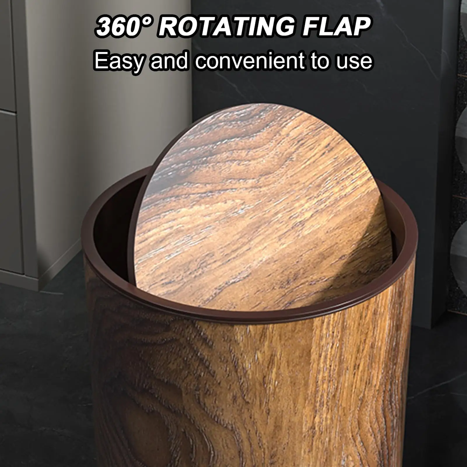Retro-Style Wooden Trash Can With Rotating Lid