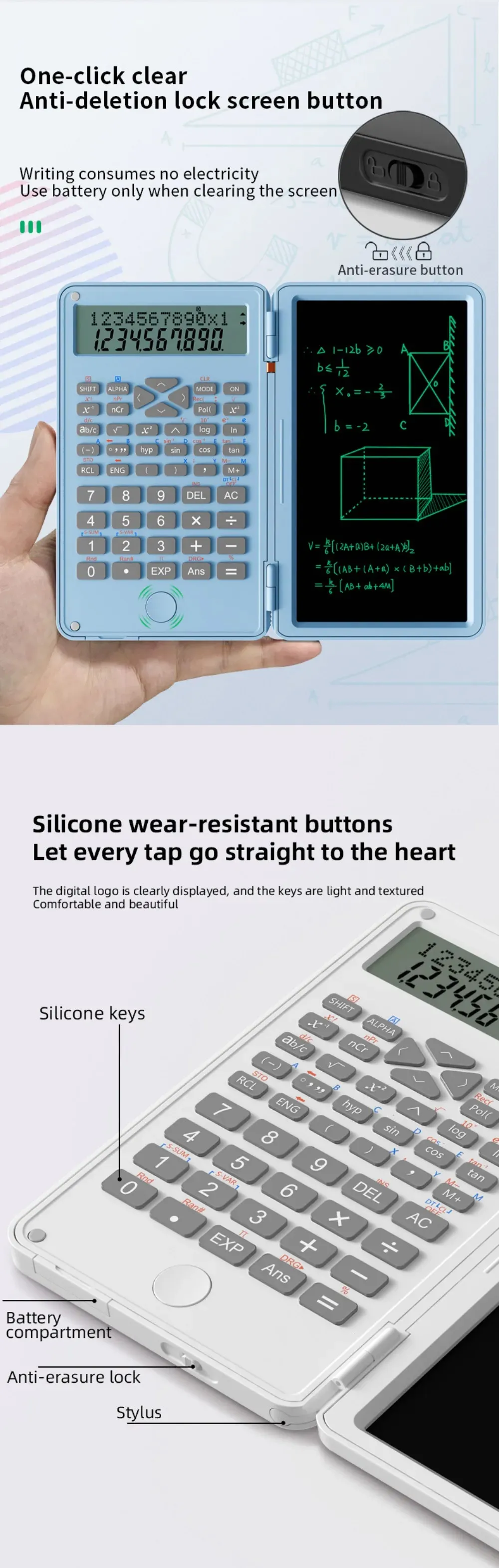 Scientific Calculator Foldable 6-inch Function Calculators with Tablet Multifunctional Large Screen Display