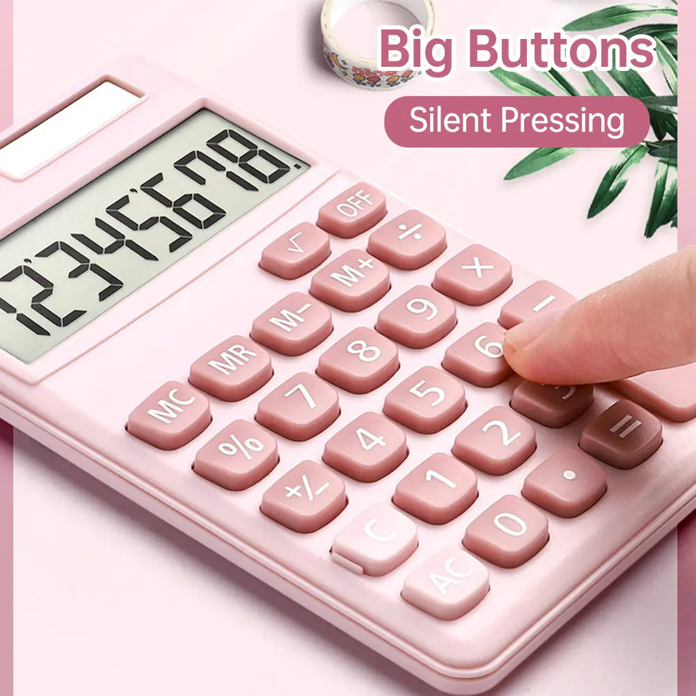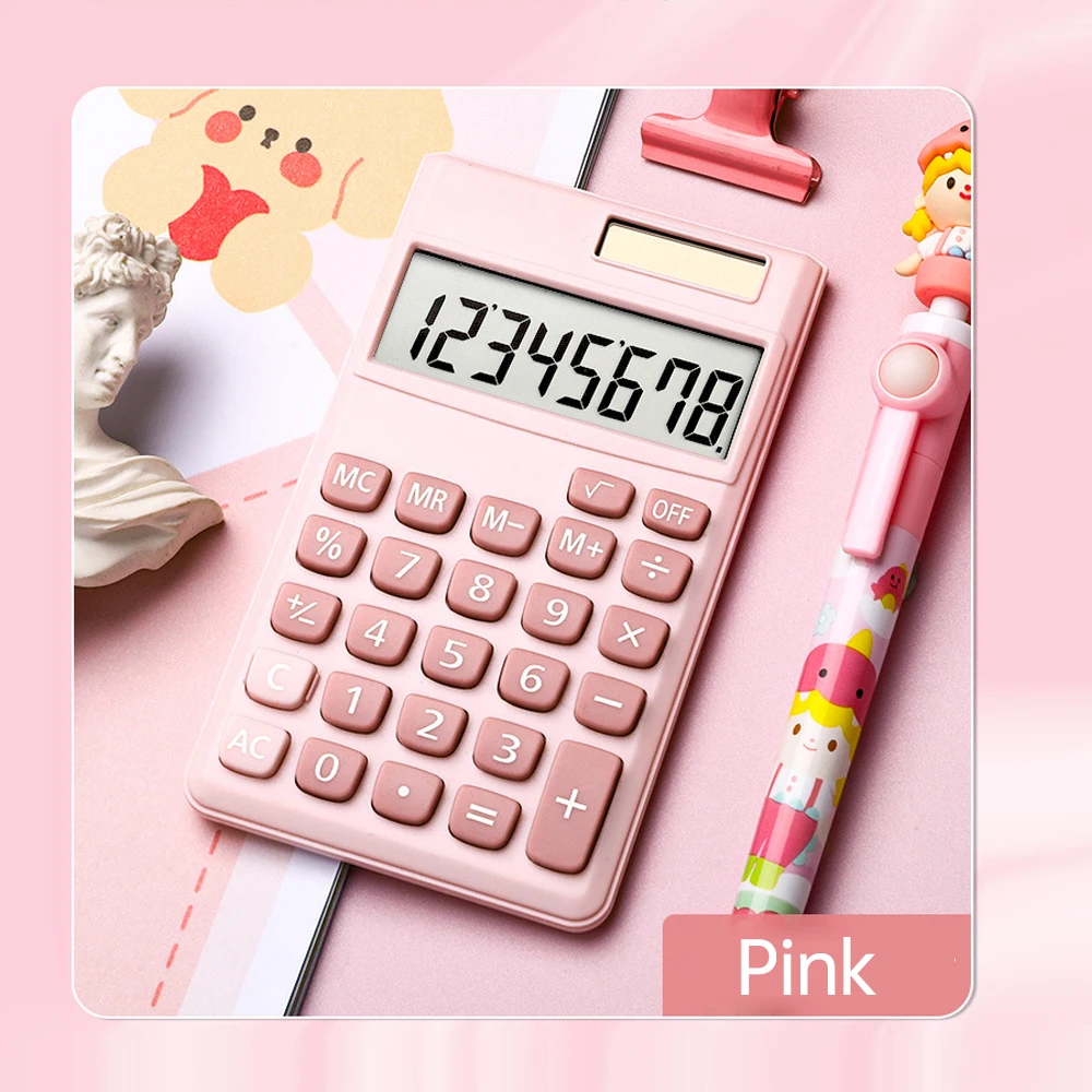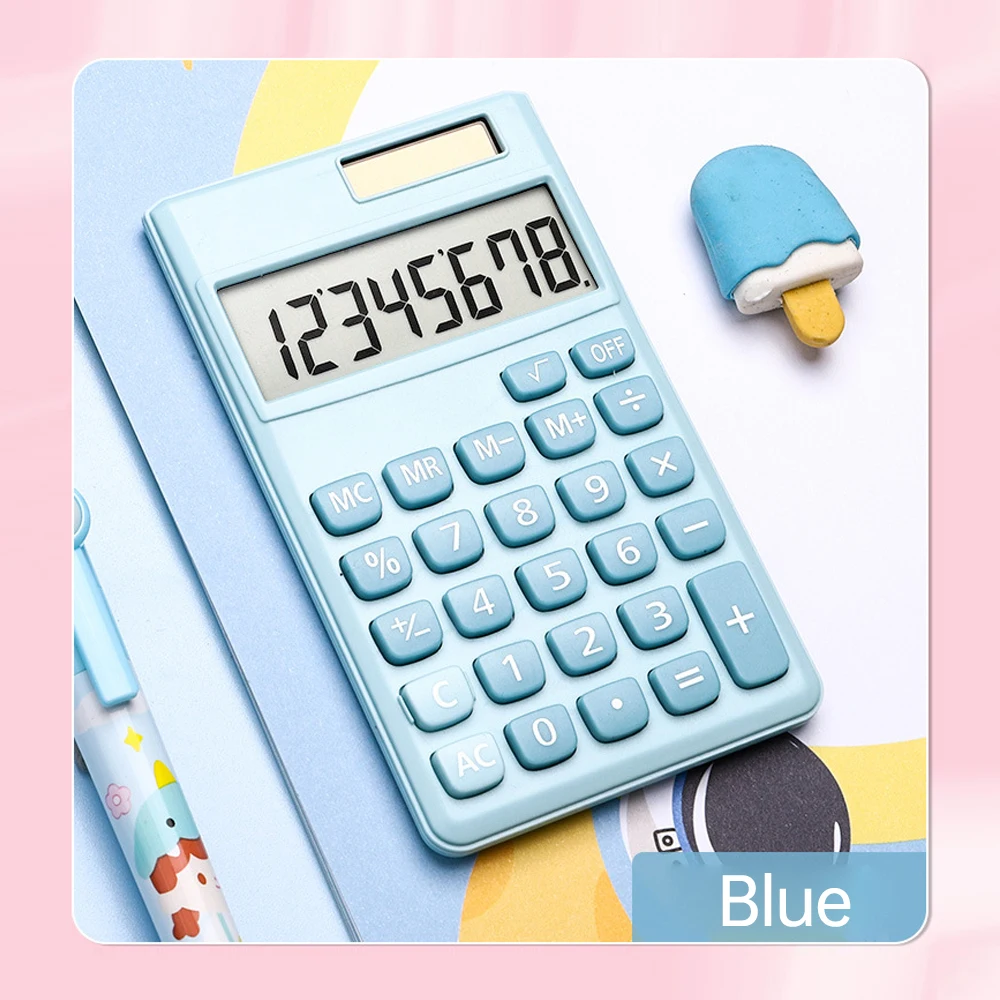 Calculator 8 Digit Large Solar Power and LCD Display Big Button Cute Candy Colored Calculator Suitable for Office